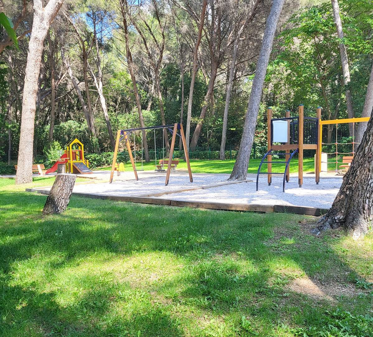 Résidence sécurisée - Accès direct à la mer - Domaine boisé de 35 hectares de pinède en bord de mer avec sentiers de promenade autour de 2 grands lacs, parcours de santé, aire de jeux pour enfants, terrains de boules, mini-golf, tennis et piscine.