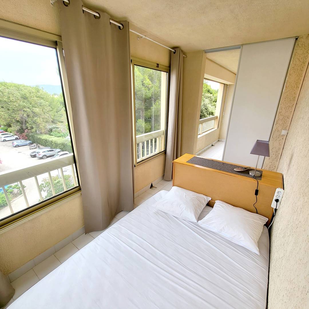 (Réf : Genévrier 315) - Appartement T2 + coin nuit (30 m²) - Au 3ème étage / 5 (avec ascenseur) - Parking en extérieur commun à la résidence - A 200 m des plages et des commerces - Animaux et fumeurs non admis.